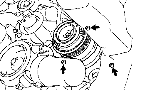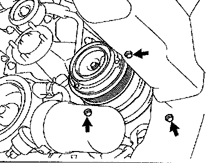 b. Turn the crankshaft pulley bolt to gain access to each bolt.