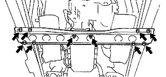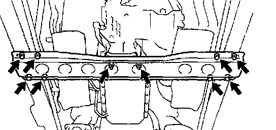 e. Install the frame crossmember with the 8 bolts and the 4 nuts.