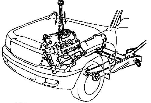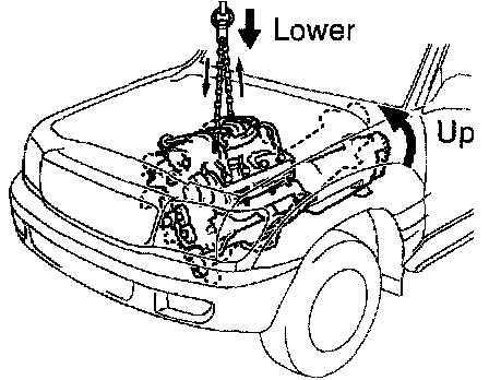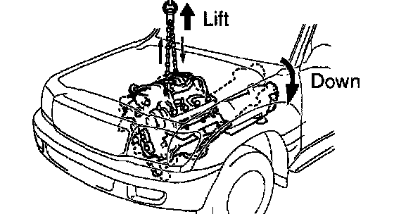 b. Slowly lower the engine and the transmission assembly into the engine compartment.