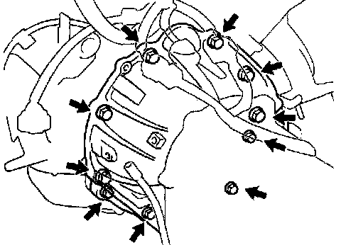 d. Remove the 8 bolts, the 2 nuts and the frame crossmember.