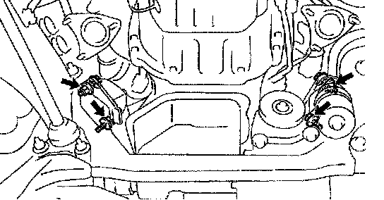 b. Loosen the 2 union nuts, and remove the 2 oil cooler pipes.