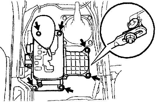 d. Remove the 3 screws, and disconnect ECM from the body bracket.