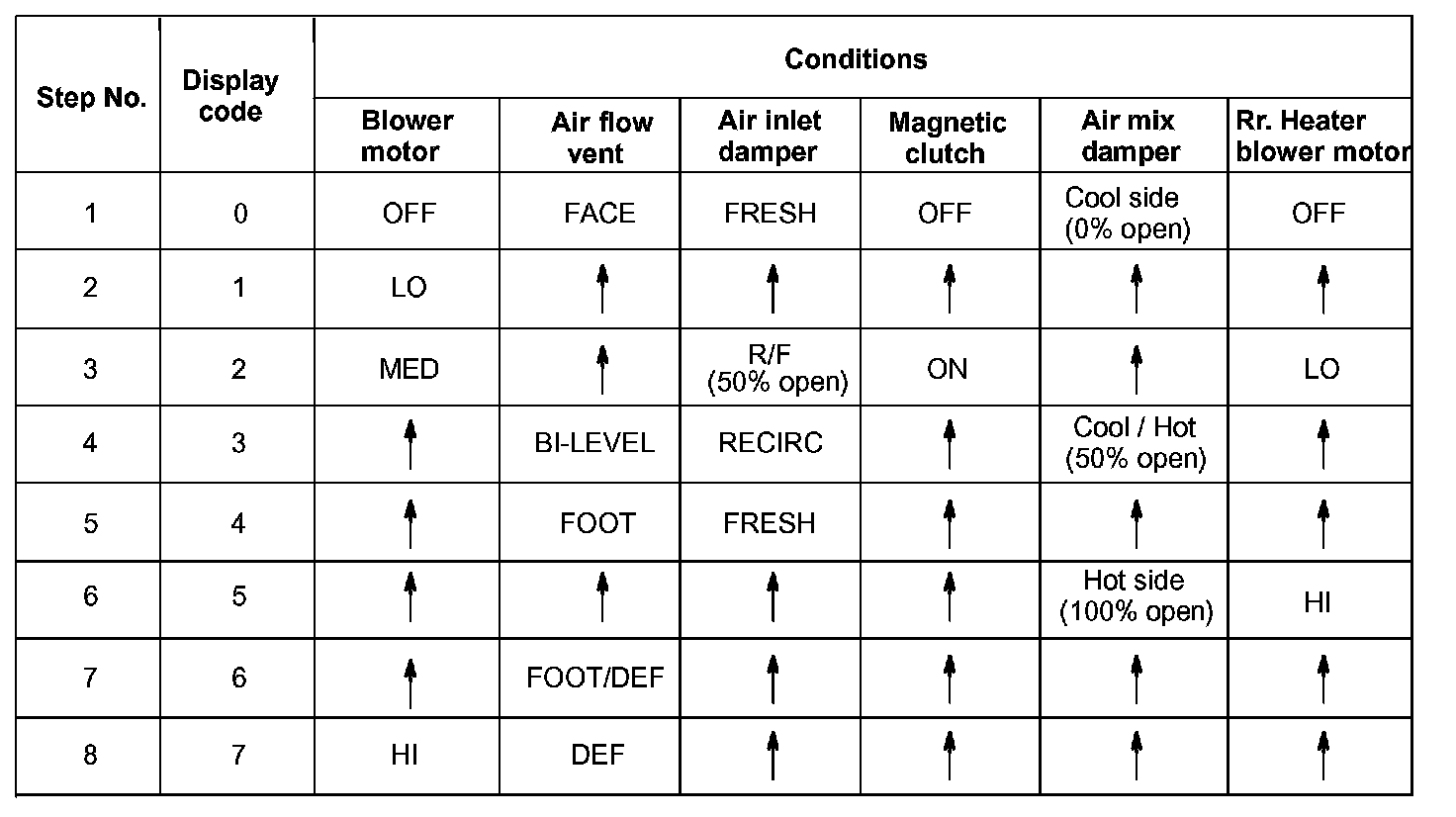 LIST OF OPERATION METHODSBy operating each of the A/C control switches as shown in the diagram, it is possible to enter the diagnosis check mode.