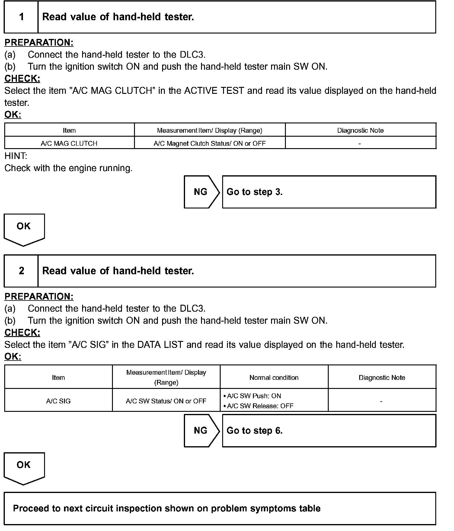 HINT: In case of using the hand-held tester, start the inspection from step 1 and in case of not using the hand-held tester, start from step 3.