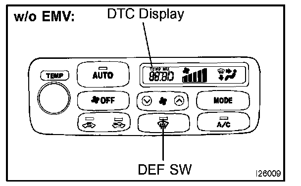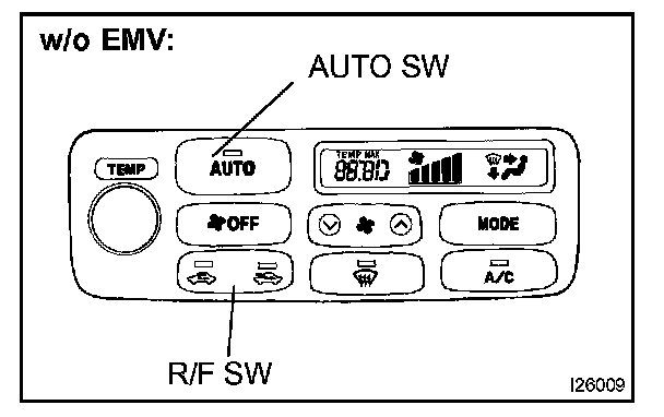 a. Turn the ignition switch to on while pressing the A/C control AUTO SW and R/F SW simultaneously.