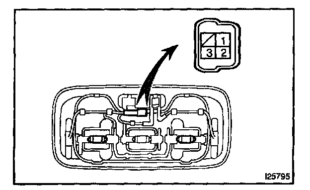 b. Turn the room light switch ON, check that continuity exists between terminal 2 and body ground.