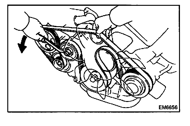 Loosen the drive belt tension by turning the drive belt tensioner counterclockwise, and remove the drive belt.