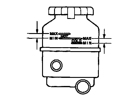 HINT: Check that the fluid level is within the HOT LEVEL range on the reservoir. If the fluid is cold, check that it is within the COLD LEVEL range.