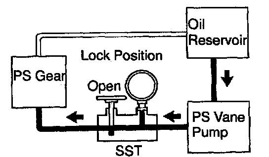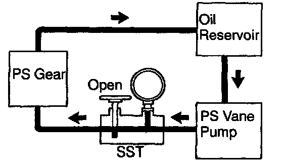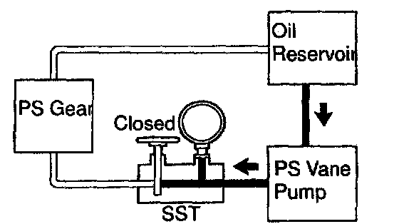 g. With the engine idling, close the valve of the SST and observe the reading on the SST.