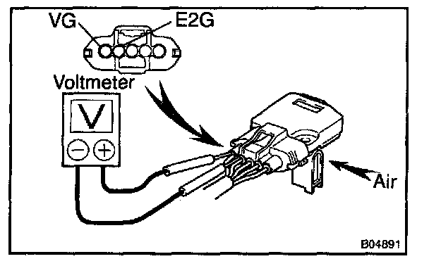 4. Using a voltmeter, connect the positive (+) tester probe to terminal VG and negative (-) tester probe to terminal E2G.