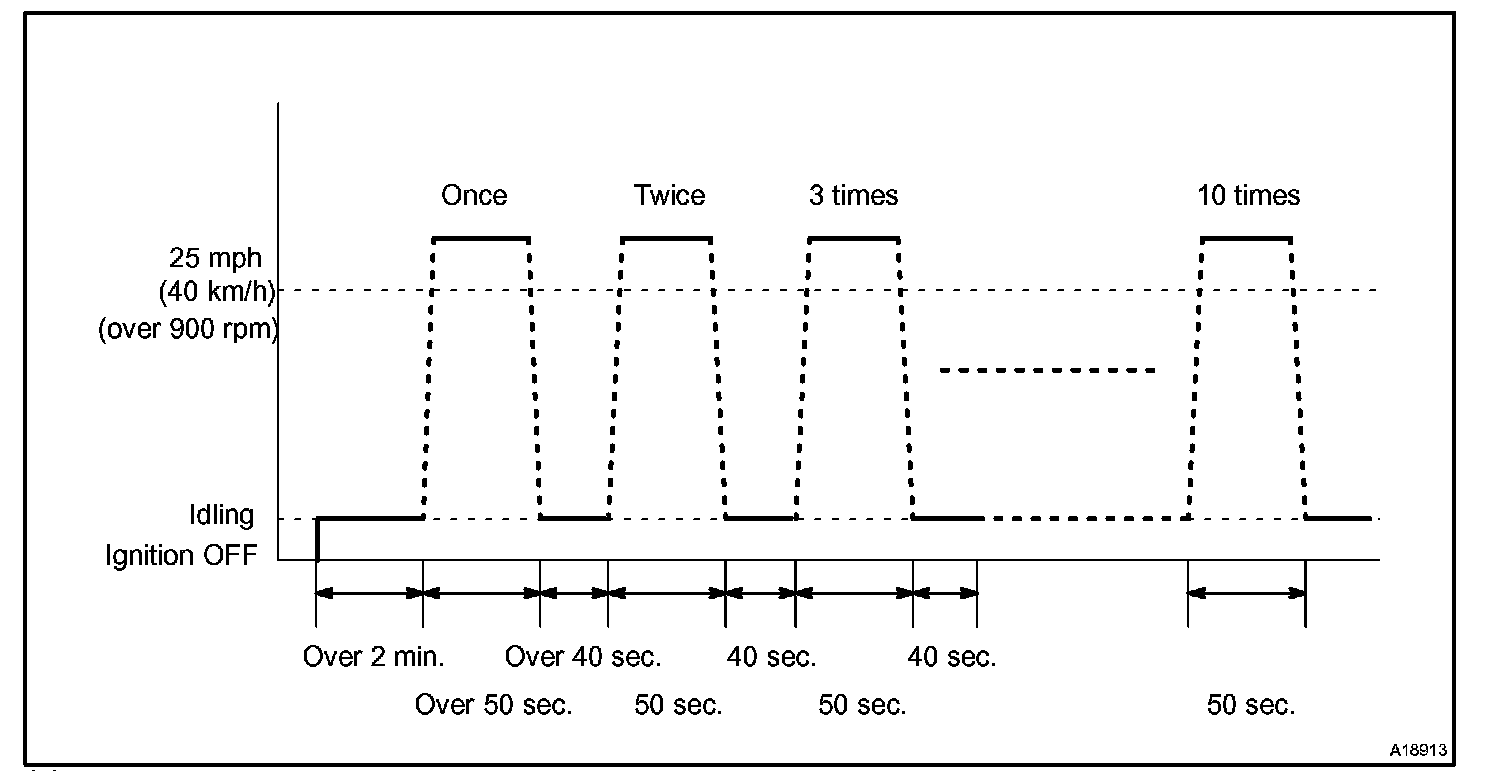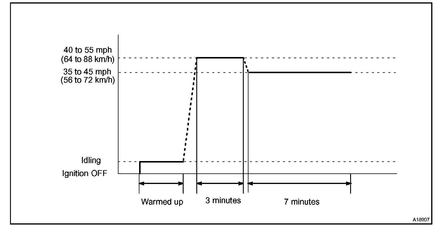 If IAT is less than 10 °C (50 °F) when engine was started, drive the vehicle at 40 to 55 mph (64 to 88 km/h) for additional 4 minutes.