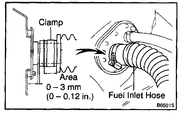 b. Check the fuel tank vapor vent system hoses and all connections for looseness, sharp bends or damage.