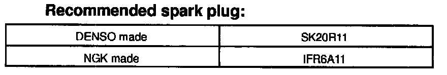 - Spark plug should be replaced every 100,000 km (60,000 miles).