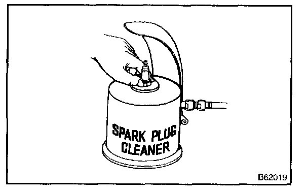 HINT: If there are traces of oil, remove it with gasoline before using the spark plug cleaner.