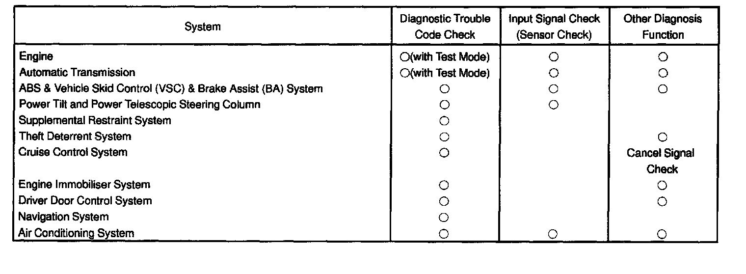By using these check functions, the problem areas can be narrowed down quickly and troubleshooting can be performed effectively. Diagnostic functions are incorporated in the following Systems in the LAND CRUISER.