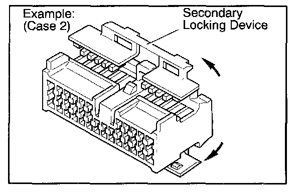 b. Use a special tool or the terminal pick to unlock the secondary locking device or terminal retainer.
