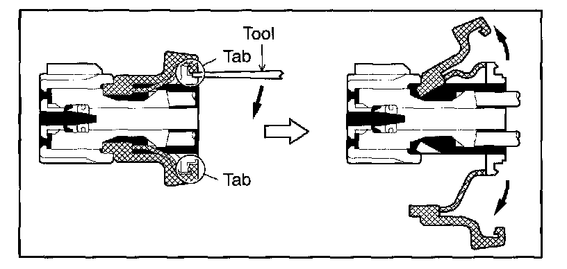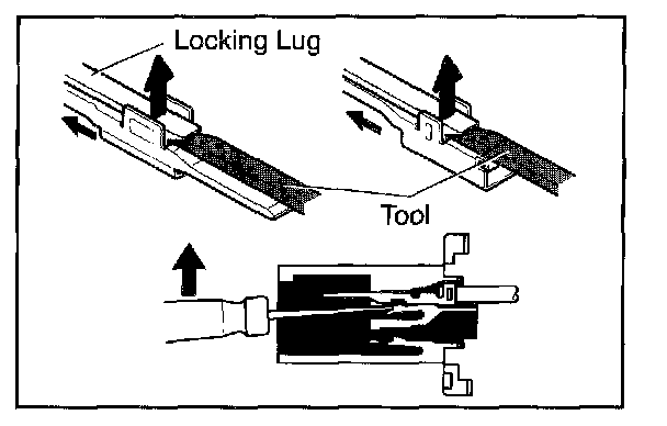 a. Locking device must be disengaged before the terminal locking clip can be released and the terminal removed from the connector.