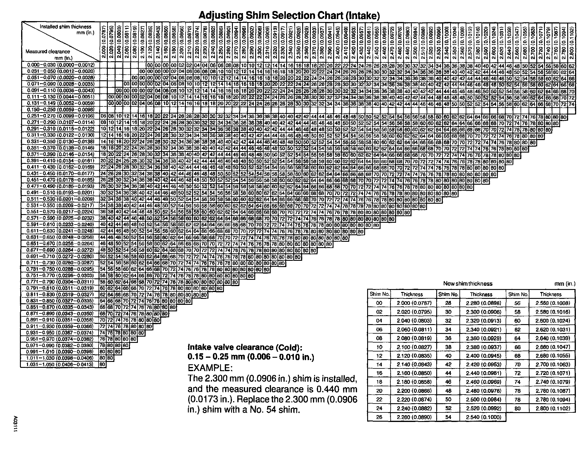 Adjusting Shim Selection Chart (Intake)