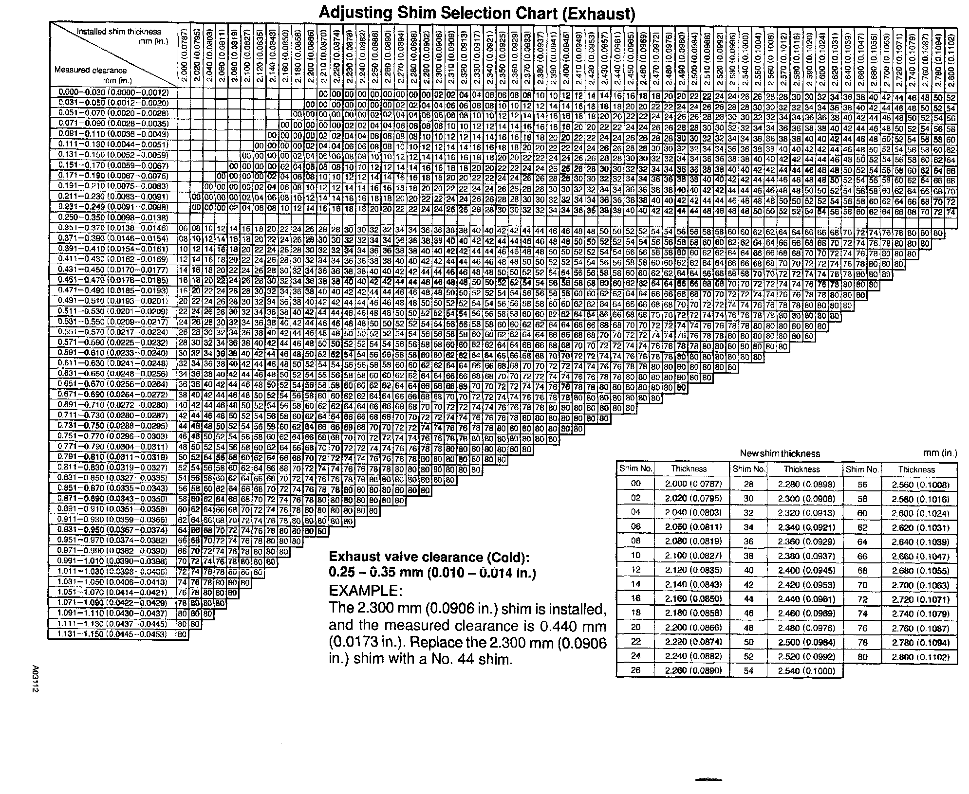 Adjusting Shim Selection Chart (Exhaust)