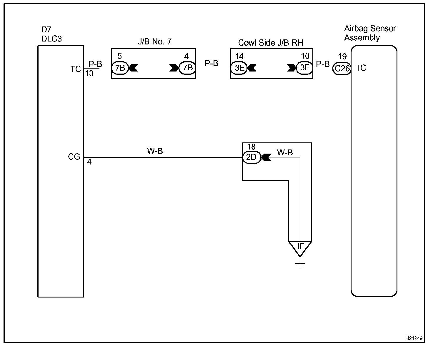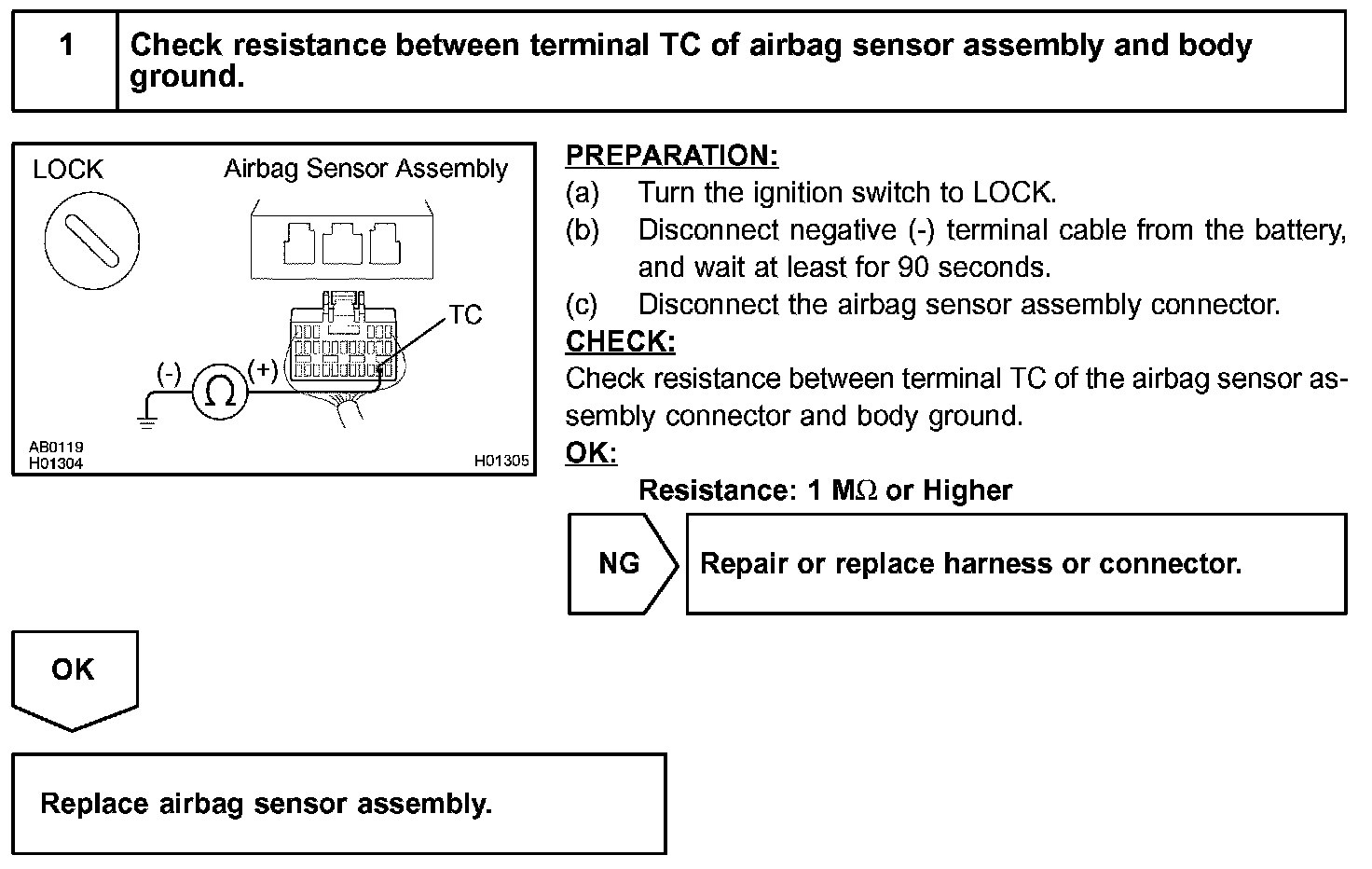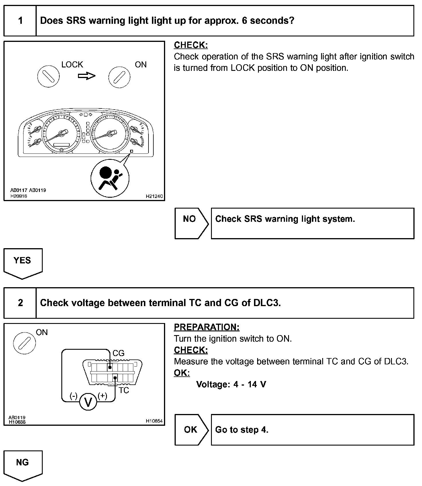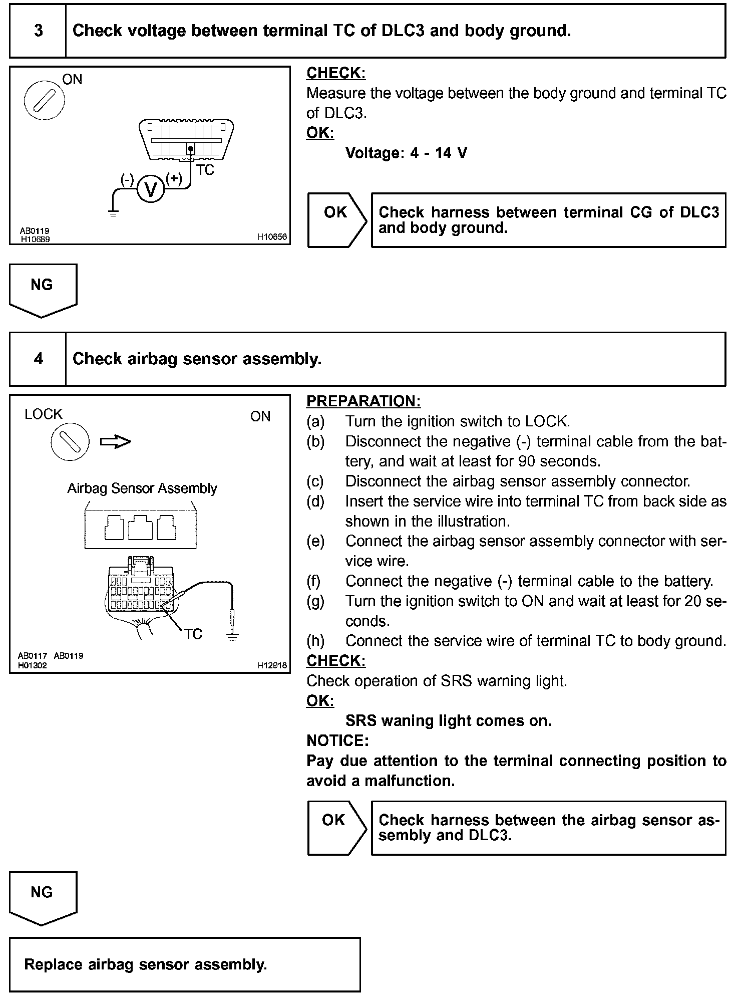 DTC output mode is set by connecting terminal TC and CG of the DLC3 the airbag sensor assembly.