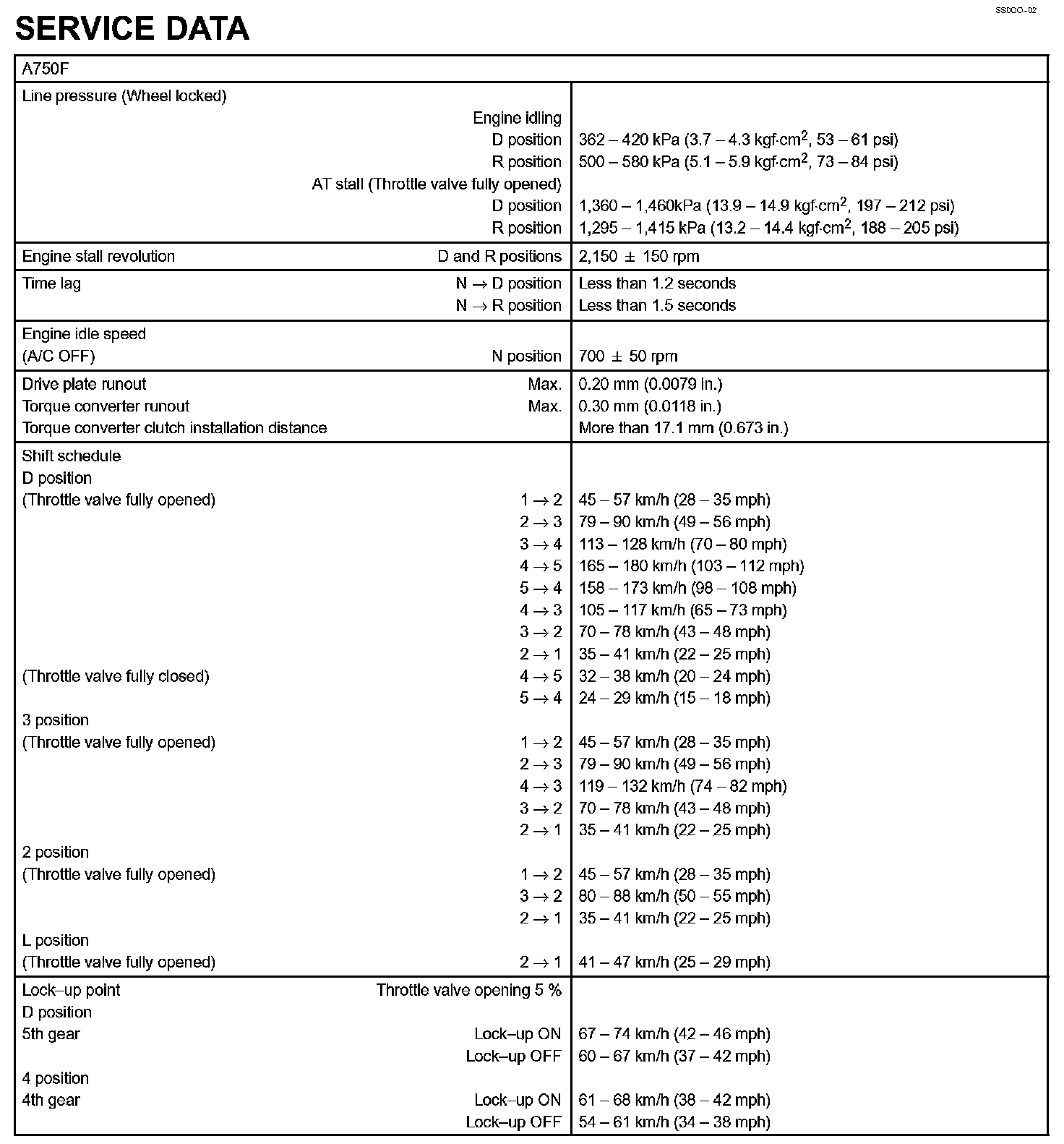 Automatic Transmission - Service Data: