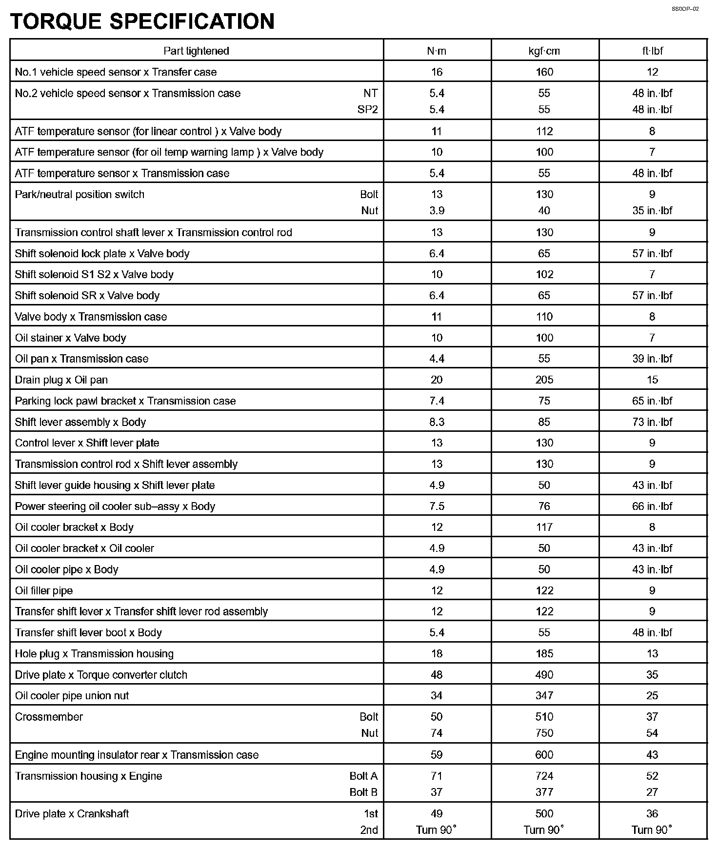 Automatic Transmission - Torque Specification: