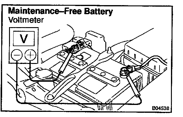 c. Measure the battery voltage between the negative (-) and positive (+) terminals of the battery.