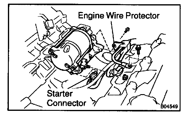 e. Remove the bolt, and disconnect the engine wire protector from the starter.