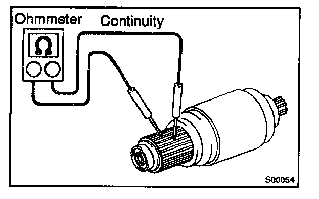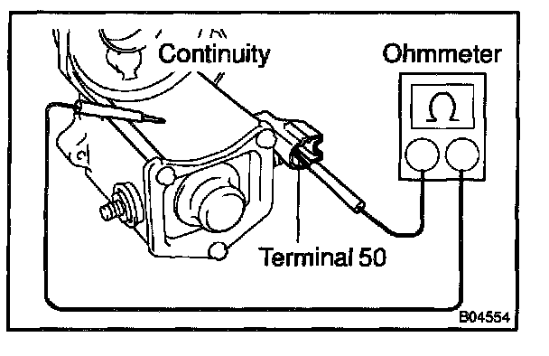 Using an ohmmeter, check that there is continuity between terminal 50 and the switch body.