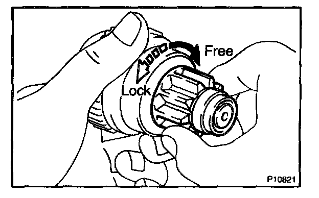 Try to rotate the pinion gear counterclockwise and check that it locks.
