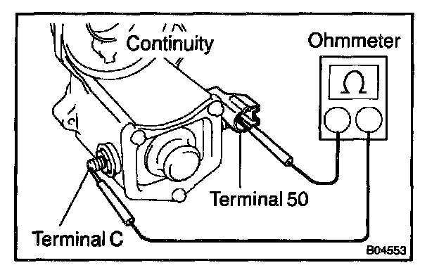 Using an ohmmeter, check that there is continuity between terminals 50 and C.