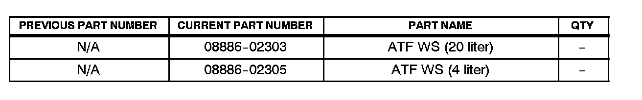 ^ If WS is filled into a non-WS automatic transmission, the fluid could leak out under high temperatures (approximately 284°F [140°C]).