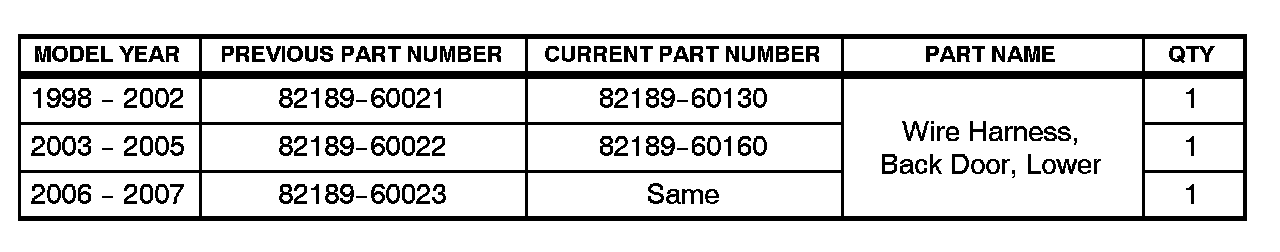Some customers may experience a condition where functions in the tail gate may operate abnormally. An updated back door wire harness has been made available to improve this condition.