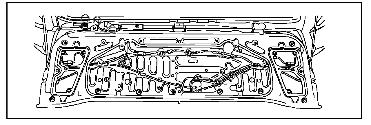 10. Detach the 11 clips holding the harness to the tailgate.