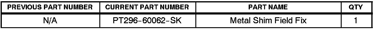 6. Install the small metal shim (P/N PT296-60062-SK), with the paint dot facing down, into the shroud latch opening. Be sure it is secure.