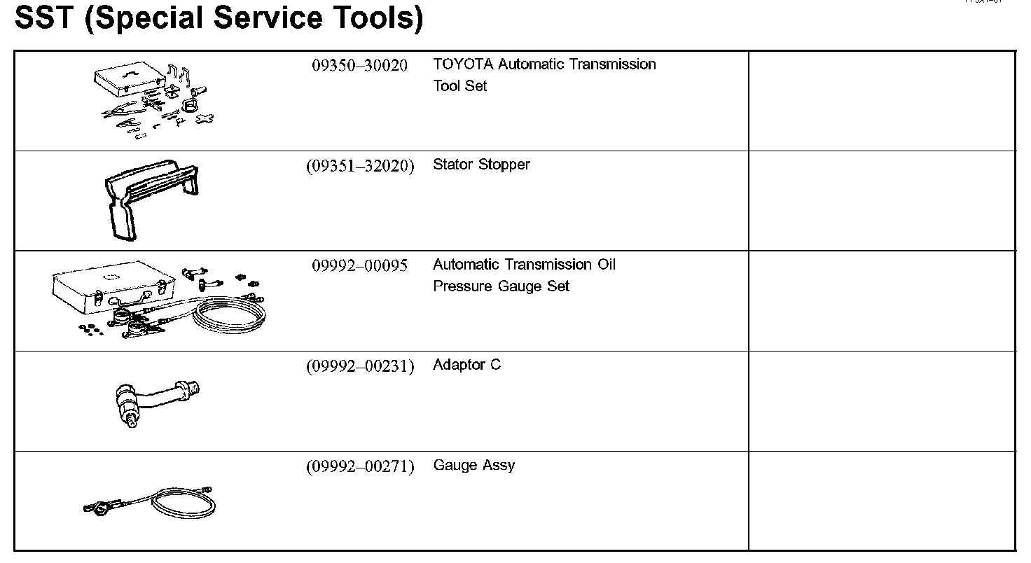 Automatic Transmission - Recommendent Tools: