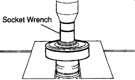 b. Using a socket wrench and press, remove the rear ball bearing.