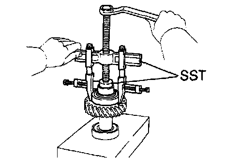 b. Using SST, remove the front ball bearing.