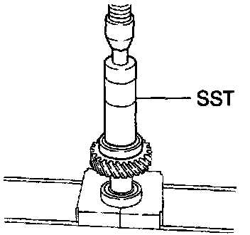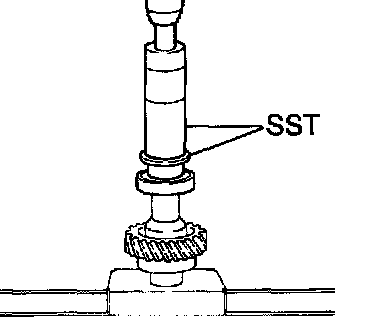 a. Using SST and a press, install the rear bail bearing.