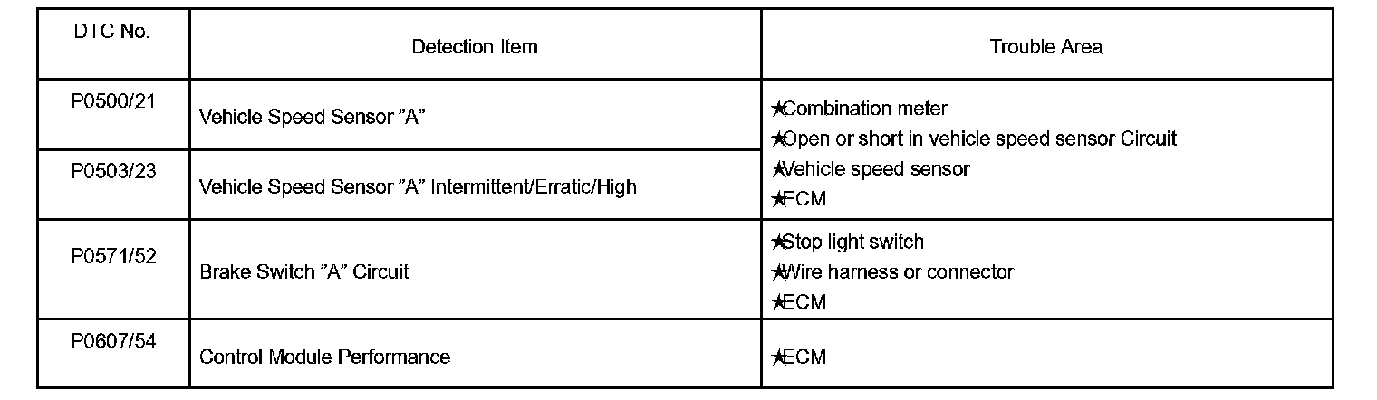 If a malfunction code is displayed during the DTC check, check the circuit listed by code in the table and proceed to the appropriate troubleshooting.