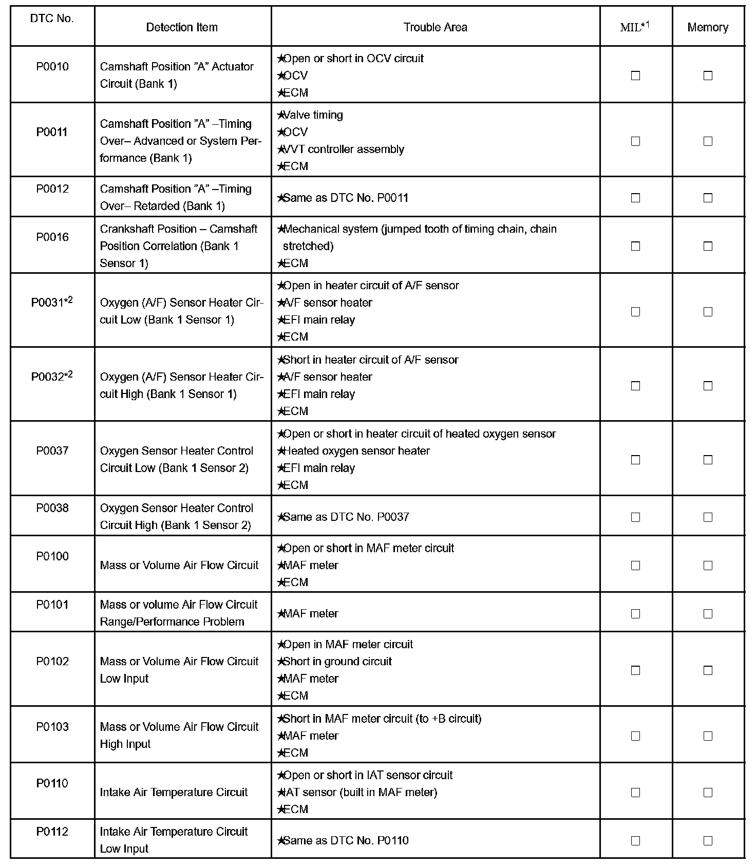 DIAGNOSTIC TROUBLE CODE CHARTP0010 - P0112: