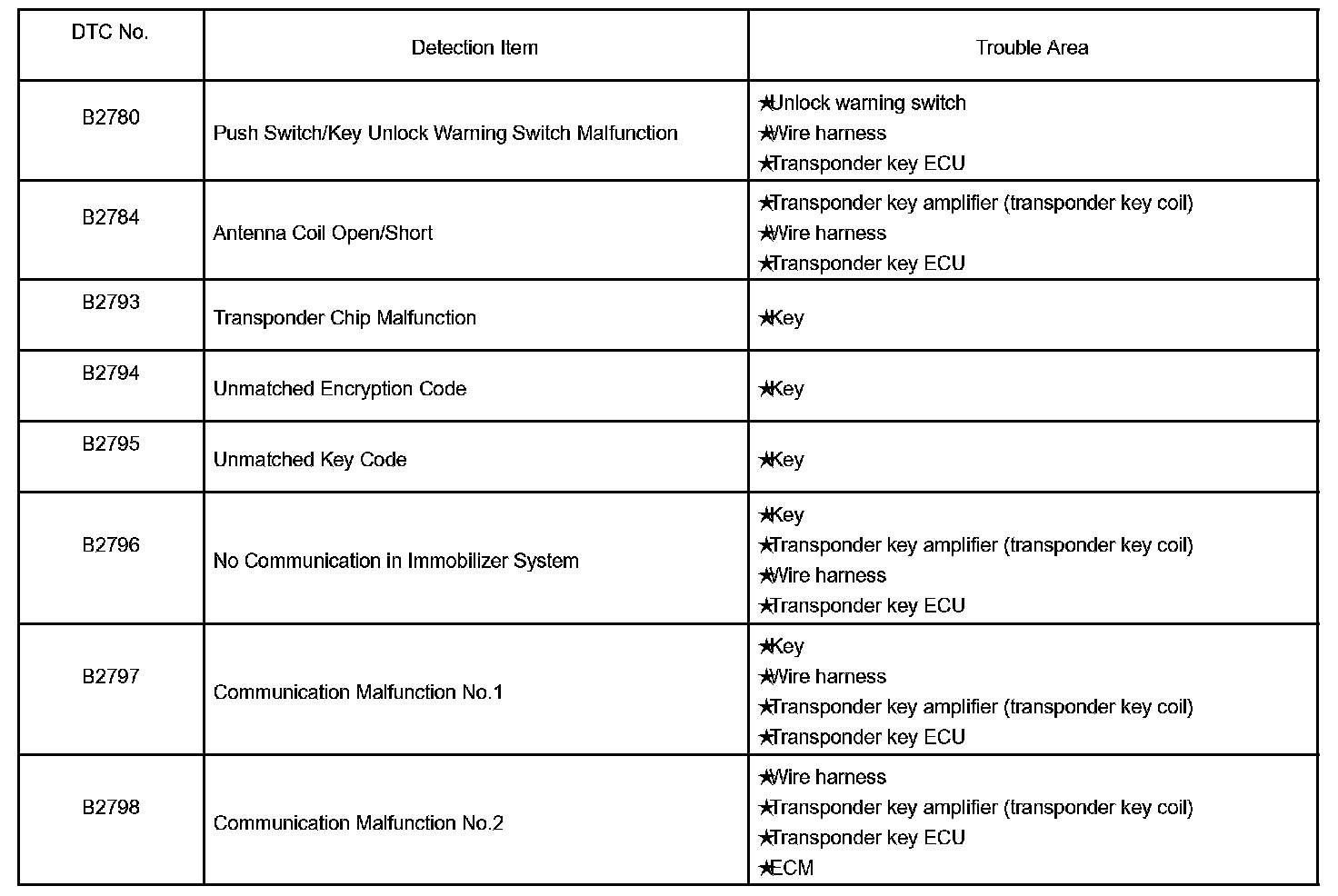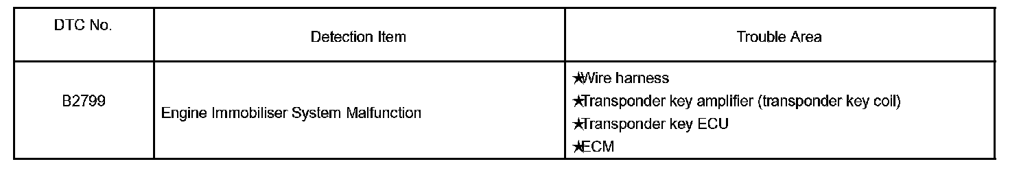 TRANSPONDER KEY ECU DTC CHART