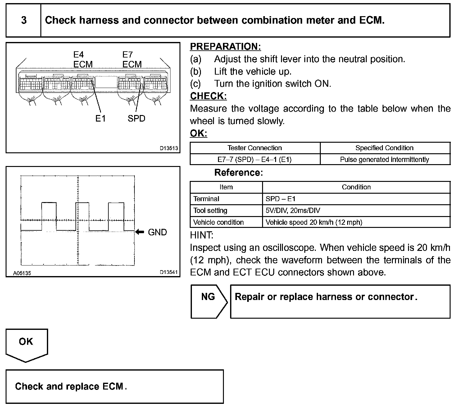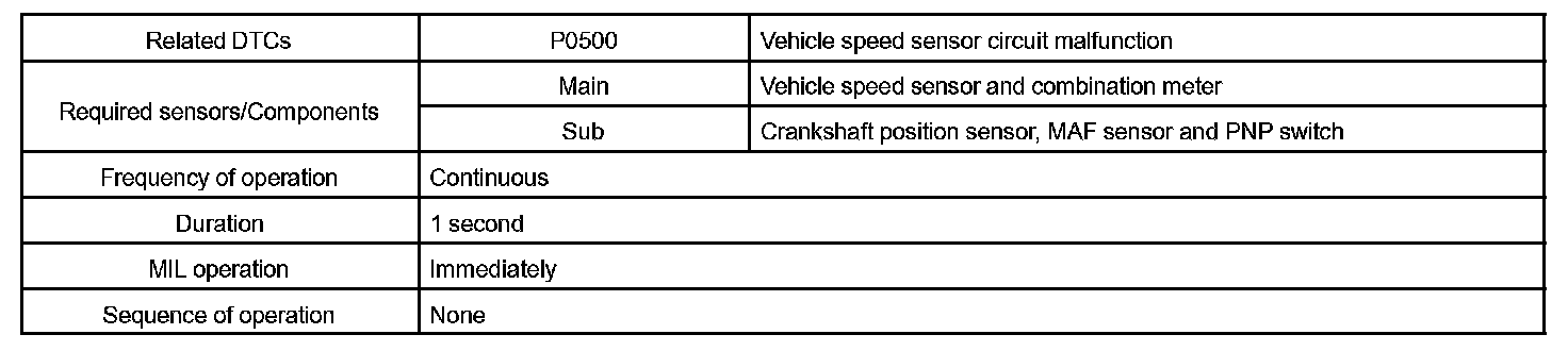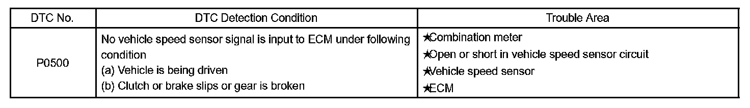 If the ECM does not detect any vehicle speed signals while the vehicle is being driven, the ECM interprets it as a malfunction in the vehicle speed sensor circuit and sets a DTC.