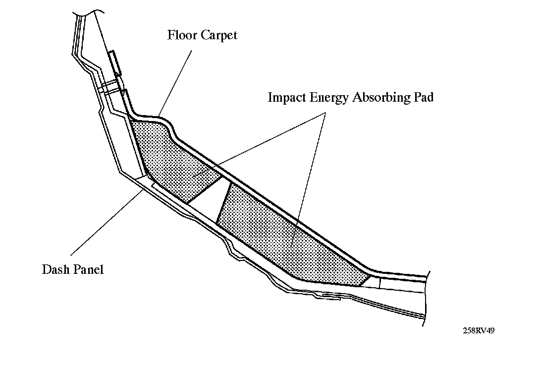 On all models, impact energy absorbing pads have been provided in the dash area behind the floor carpet for realization of excellent safety.