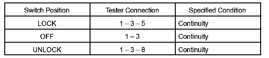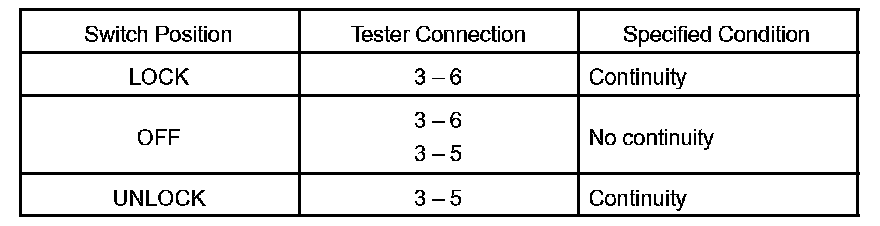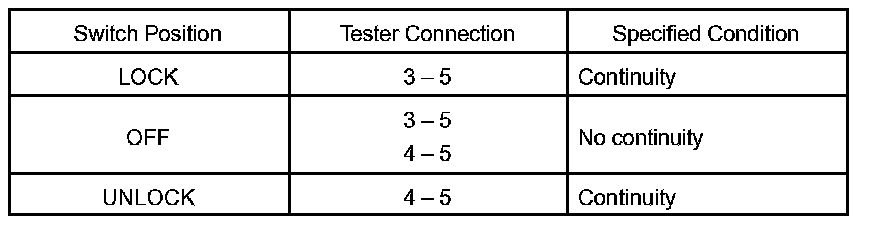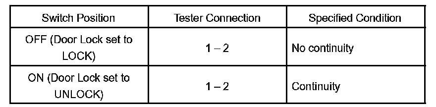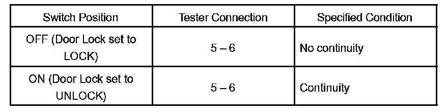INSPECT DOOR KEY LOCK AND UNLOCK SWITCH CONTINUITY