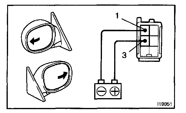 INSPECT MIRROR MOTOR OPERATIONa. Connect the positive (+) lead from the battery to terminal 3 and the negative (-) lead to terminal 1, and check that the mirror turns to out side.