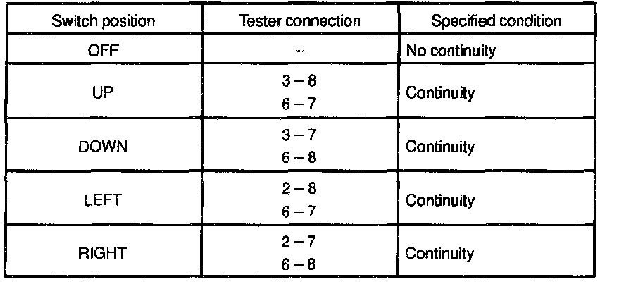 INSPECT LEFT SIDE MIRROR SWITCH CONTINUITY
