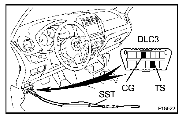 1. Using SST, connect terminals TS and CG of the DLC3.
