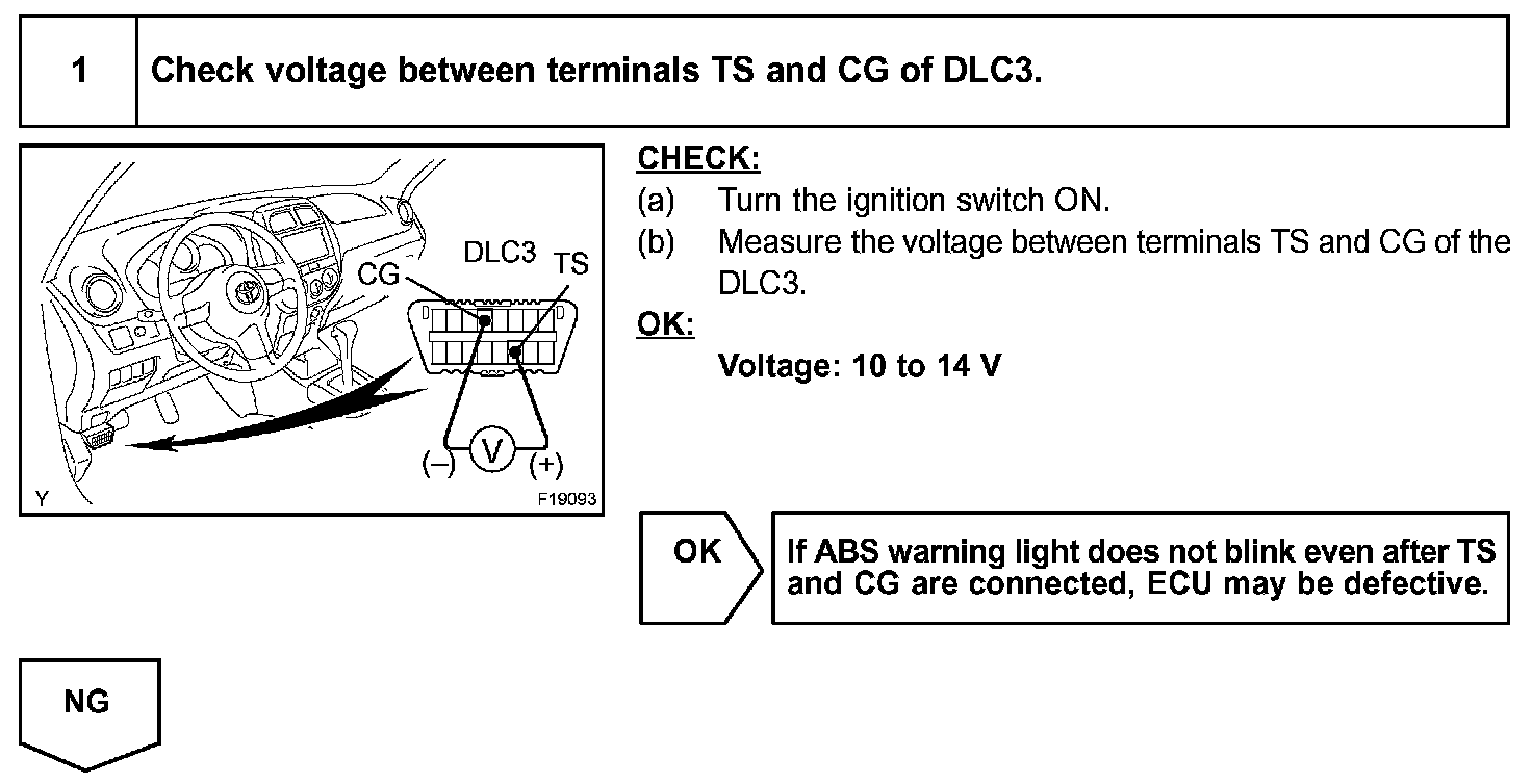 Connecting terminals TS and CG of the DLC3 starts the check.