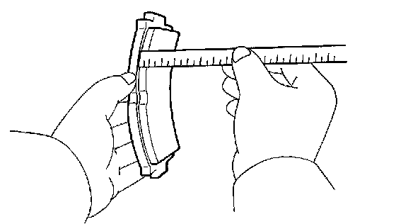 Replace the disc if the thickness of the disc is at the minimum thickness or less. Replace the disc or grind it on a lathe if it is scored or is worn unevenly.
